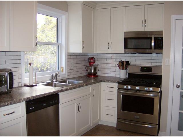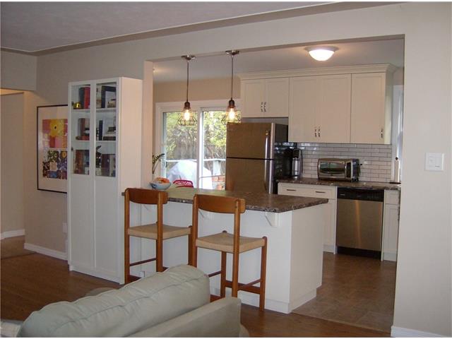 Enter this house and be at home, beautiful refinished hardwood floors, a spacious open concept living room. Stunning open concept kitchen with newer Olympia cabinets, crown molding & tons of counter space with breakfast bar overlooking the living room. Eat in kitchen has a walk out to deck and great entertaining yard. Master bedroom is a good size with hardwood, as does the second bedroom. The 4pc bathroom has been updated with new vanity, stone counter & newer flooring . The lower level has a recreation room to hang out as well as a b guest room. All of the updates in this home have been recently done and it is ready for you to move in and enjoy. Close to schools, shopping, churches and transportation. This house is a pleasure to call home.